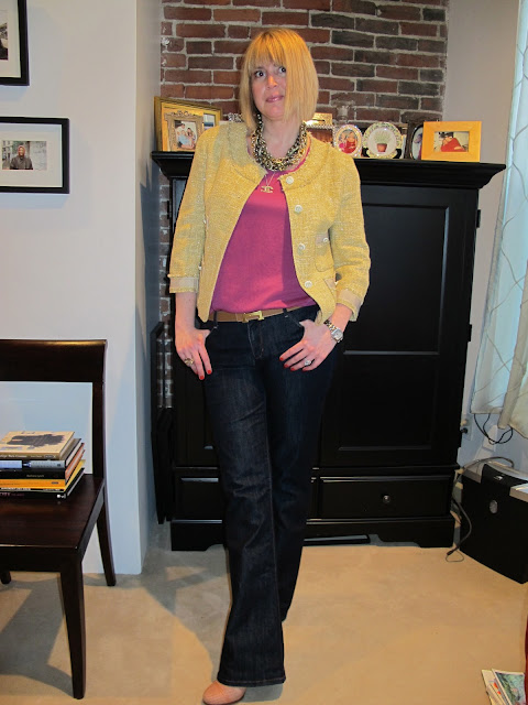 | Aris Geldis necklace, Chanel ring and pin, Elisha Daniels scarf |